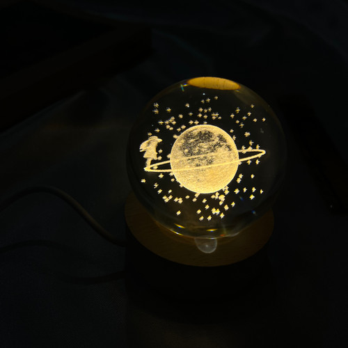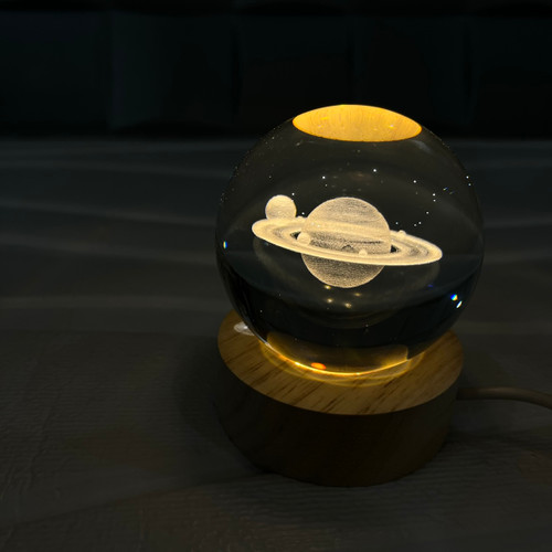 چراغ خواب گوی کریستالی طرح زحل چند رنگ همراه با کابل usbناموجود