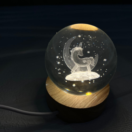 چراغ خواب گوی کریستالی با طرح اسب و ماهناموجود