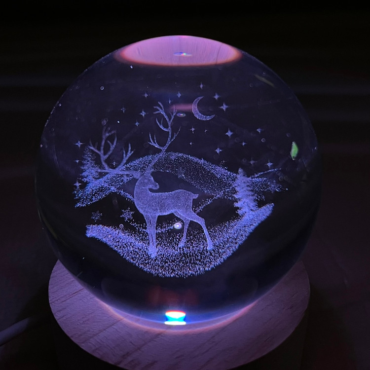 خواب گوی کریستالی با طرح گوزن چند رنگ