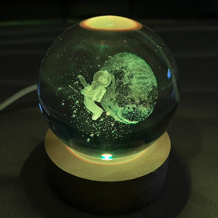 چراغ خواب گوی کریستالی با طرح فضانورد چند رنگ