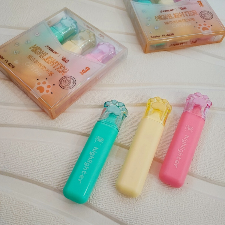 هایلایتر جعبه دار پاستلی سه تایی طرح پنجه گربه