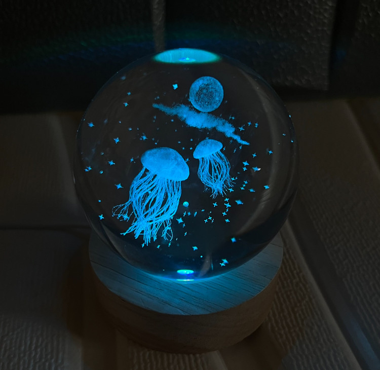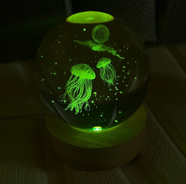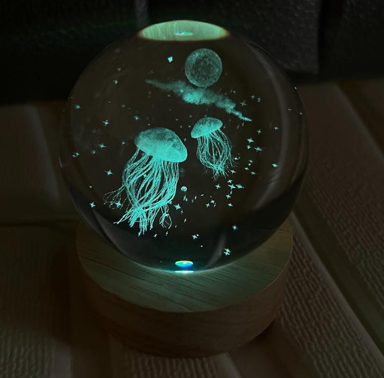 گوی کریستالی با طرح ماه و عروس دریایی که چند رنگ است و با کابل وصل میشود و کیفیت خیلی عالی ای دارد✨