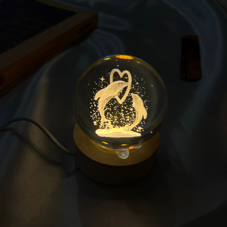 چراغ خواب گوی کریستالی طرح دلفین و قلب همراه با کابل usb